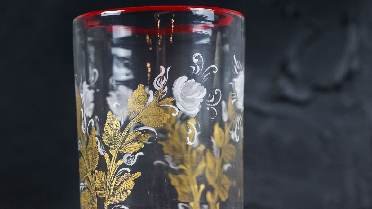 Glass glass made and decorated entirely by hand by our glass artisans. The decoration carried out with the use of 24 carat liquid gold and fusible enamels fired makes this object a suitable designer accessory for decorating your kitchen or an excellent gift idea for friends or relatives.