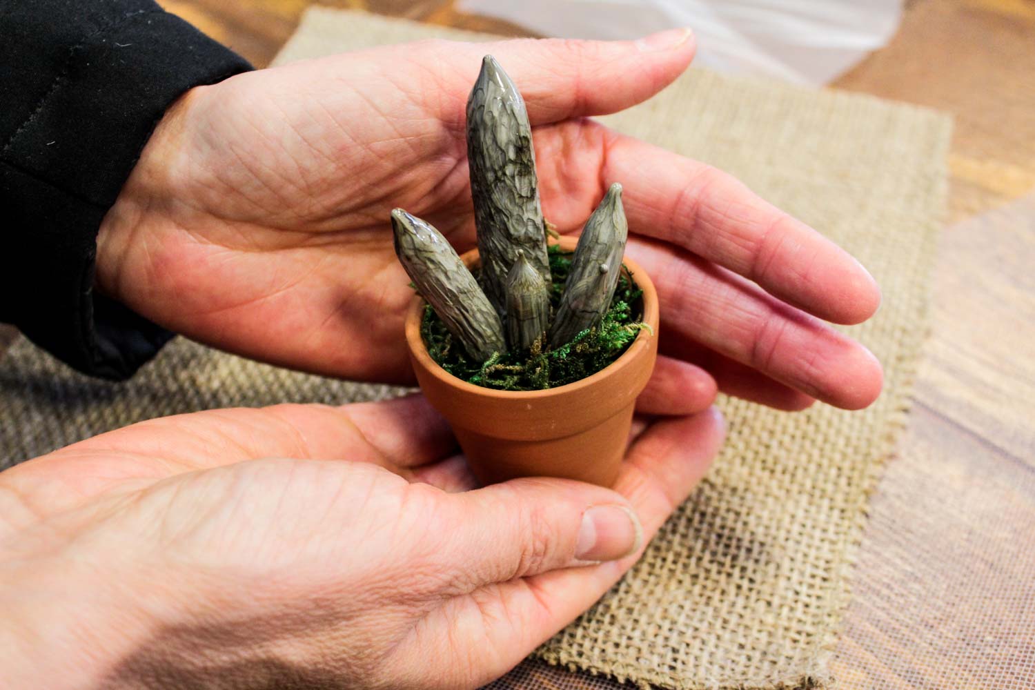 This imitation of a succulent plant with round leaves is a true jewel of nature, a precious glass artistic creation, hand-forged by our master glassmakers from the Murano island with the “lume” technique. Its fleshy leaves seem to be illuminated by light, as if they were a small treasure hidden in the terracotta vase that accompanies them. This glass succulent plant is a precious gift, an idea for a bonbonniere that combines the beauty of nature and the millenary art of Murano’s glass makers. This is a present that will last over time, like the indelible memory of a special moment. Each time that you’re going to look at this Murano glass creation, you will be surprised by its beauty and by its ability to bring elegance at home.