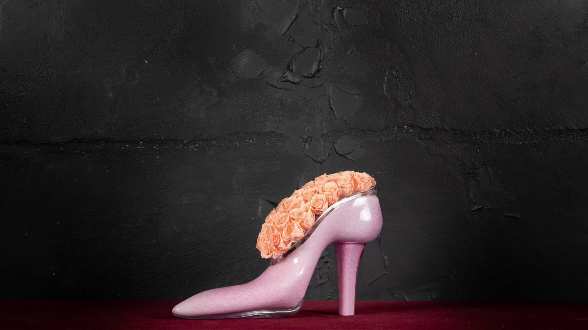 Sophisticated glass work that skillful artisans are able to shape in the Murano furnaces. This work of art is enriched by our unmissable stabilized roses that, hand-set by our florists on the upper part, complete this shoe by the fairy-tale charm making it an artistic gem to give away.