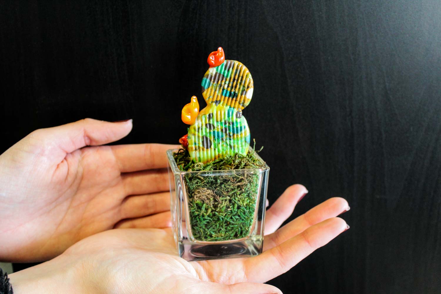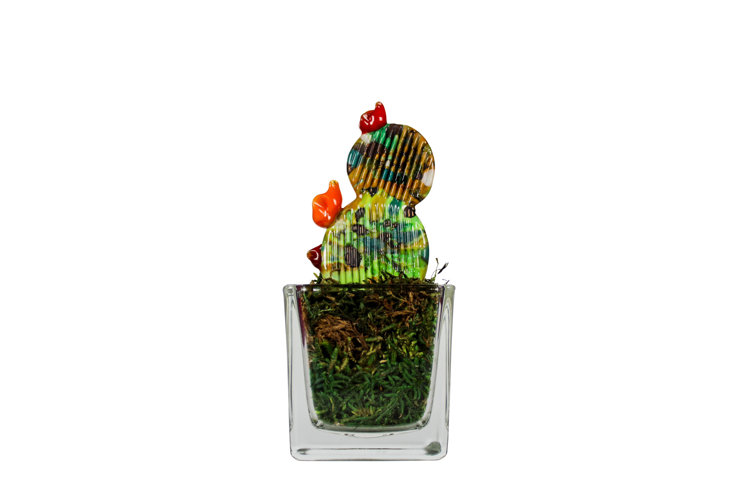 This succulent plant imitation with round leaves is a true jewel of nature, a precious glass artistic creation hand-forged by our master glassmakers from the Murano island with the “lume” technique. Its fleshy leaves seem to be illuminated by light, as if they were small treasures hidden in the glass vase that accompanies them. Its intense and bright green, together with the other colors of the glass, creates a unique and spectacular color contrast, capable to catch anyone’s attention and glance. This glass succulent plant is a precious gift, an idea for a bonbonniere that combines the beauty of nature and the millenary art of Murano’s glass makers. This is a present that will last over time, like the indelible memory of a special moment. Each time that you’re going to look at this Murano glass creation, you will be surprised by its beauty and by its ability to bring elegance at home.