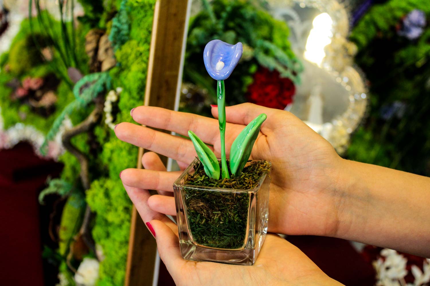 “In the Murano glass a secret hides: a calla flower with a delicate periwinkle color. This bonbonniere embodies elegance and purity, giving a touch of refinement to any environment. Hoping this calla flower will bring harmony and serenity to who receives it, and that its splendor will capture the essence of eternal beauty”. This imitation in Murano glass, inserted in a glass vase and surrounded by stabilized moss, is a precious gift, an idea for a bonbonniere that combines the beauty of nature and the millenary art of Murano’s glass makers. This is a present that will last over time, like the indelible memory of a special moment. Each time that you’re going to look at this Murano glass creation, you will be surprised by its beauty and by its ability to bring elegance at home.