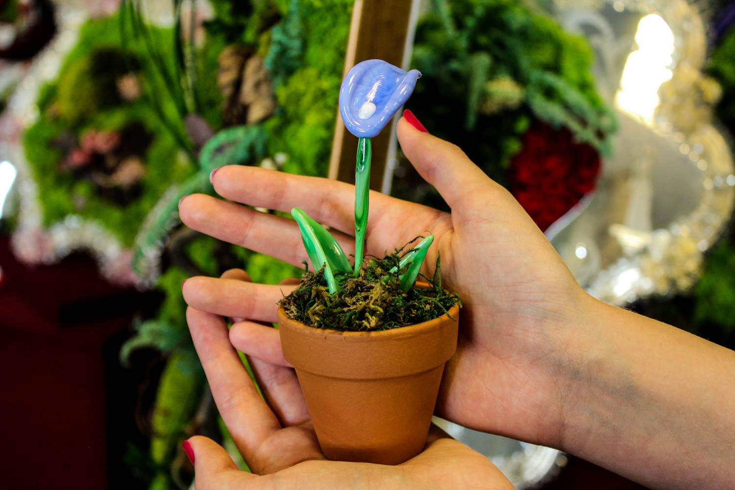 “In the Murano glass a secret hides: a calla flower with a delicate periwinkle color. This bonbonniere embodies elegance and purity, giving a touch of refinement to any environment. Hoping this calla flower will bring harmony and serenity to who receives it, and that its splendor will capture the essence of eternal beauty”. This imitation in Murano glass, inserted in a small terracotta vase and surrounded by stabilized moss, is a precious gift, an idea for a bonbonniere that combines the beauty of nature and the millenary art of Murano’s glass makers. This is a present that will last over time, like the indelible memory of a special moment. Each time that you’re going to look at this Murano glass creation, you will be surprised by its beauty and by its ability to bring elegance at home.