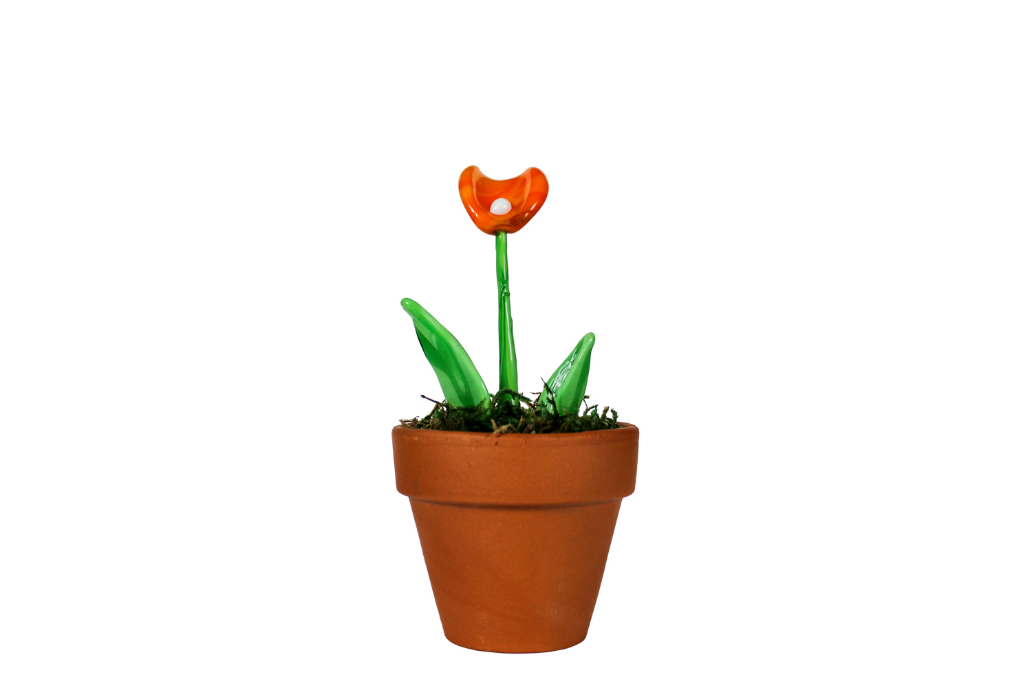Nel vetro di Murano risplende un fiore di calla dal colore arancio, vibrante e vivace. Questa bomboniera trasmette energia e vitalità, simboleggiando la passione e la creatività che abitano in ognuno di noi. Che il fiore di calla arancio porti felicità e ispirazione a chi la riceve, e che la sua luminosità illumini ogni giorno di gioia e successo. Questa riproduzione, inserita all’interno di un vasetto in terracotta e contornata da muschio stabilizzato, è un vero gioiello della natura, una preziosa creazione artistica in vetro forgiata a mano dai nostri maestri vetrai dell’isola di Murano con la tecnica del “lume”. Il suo verde intenso e brillante, insieme agli altri colori del vetro, crea un contrasto di colori unico e spettacolare, capace di catturare l’attenzione e lo sguardo di chiunque. Questo fiore di calla in vetro è un regalo prezioso, un’idea per una bomboniera che unisce la bellezza della natura all’arte millenaria dei maestri vetrai di Murano. E’ un regalo che durerà nel tempo, come un ricordo indelebile di un momento speciale. Ogni volta che guarderai questa creazione in vetro di Murano, sarai sorpresa dalla sua bellezza, e dalla sua capacità di portare eleganza all’interno delle mura domestiche.