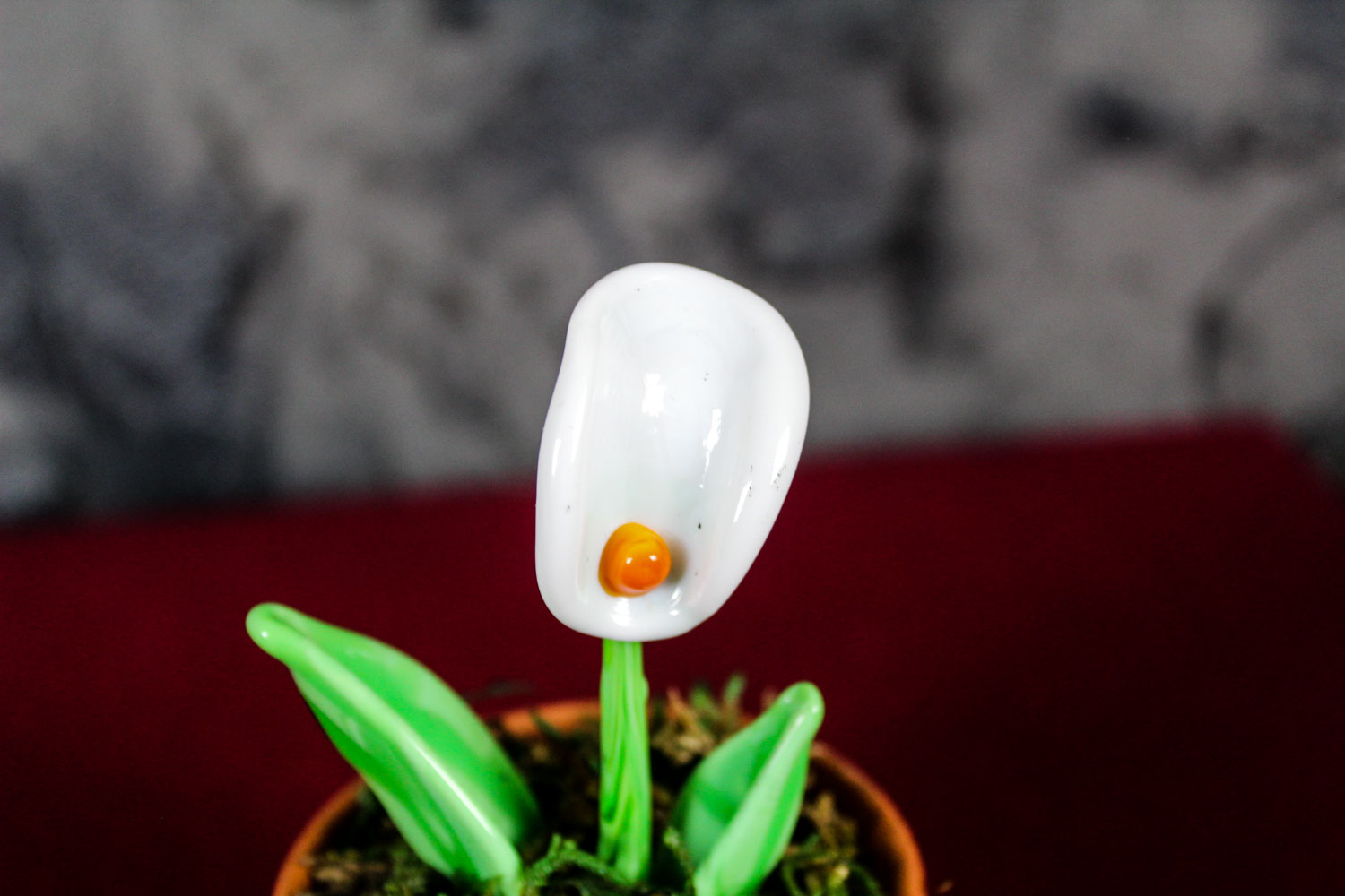 Nel vetro di Murano si riflette la purezza e l’eleganza di un fiore di calla bianco. Questa bomboniera incanta con la sua semplicità e la sua bellezza senza tempo. Il fiore di calla bianco rappresenta la purezza dell’amore e della speranza. Che porti con sé l’augurio di un futuro luminoso e di momenti indimenticabili. Che ogni giorno sia un petalo di dolcezza e che la sua grazia riempia di gioia chi la riceve. Questa riproduzione, inserita all’interno di un vasetto in terracotta e contornato da muschio stabilizzato, è un vero gioiello della natura, una preziosa creazione artistica in vetro forgiata a mano dai nostri maestri vetrai dell’isola di Murano con la tecnica del “lume”. Il suo verde intenso e brillante, insieme agli altri colori del vetro, crea un contrasto di colori unico e spettacolare, capace di catturare l’attenzione e lo sguardo di chiunque. Questo fiore di calla in vetro è un regalo prezioso, un’idea per una bomboniera che unisce la bellezza della natura all’arte millenaria dei maestri vetrai di Murano. E’ un regalo che durerà nel tempo, come un ricordo indelebile di un momento speciale. Ogni volta che guarderai questa creazione in vetro di Murano, sarai sorpresa dalla sua bellezza, e dalla sua capacità di portare eleganza all’interno delle mura domestiche.