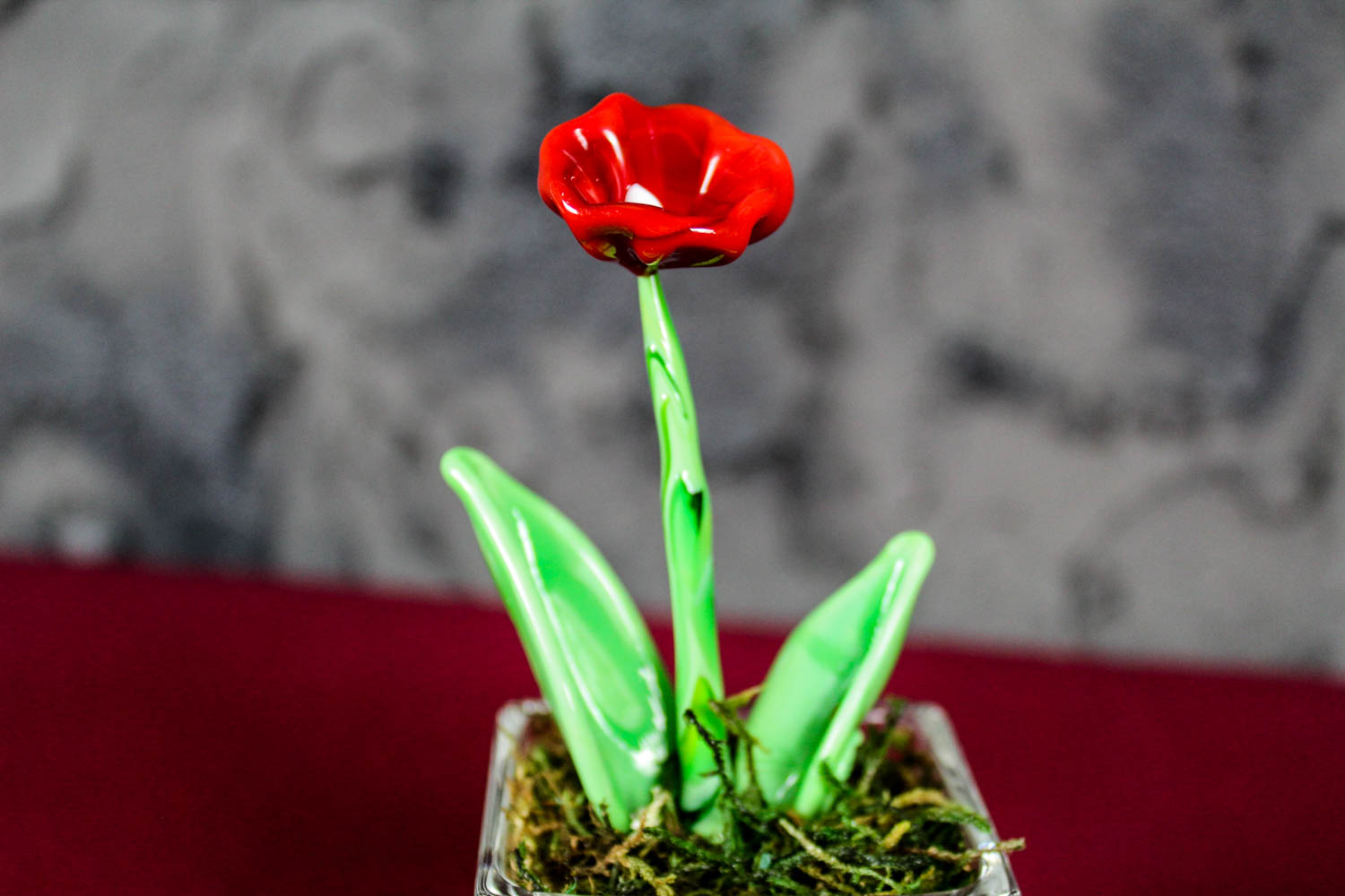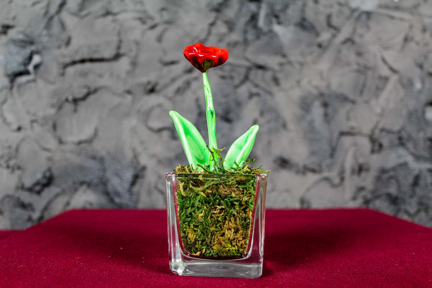 “Nel prezioso vetro di Murano si cela un segreto: un papavero rosso, simbolo di amore e passione. Questa bomboniera, unica nel suo splendore, rappresenta la bellezza effimera della vita e la sua fragilità. Che il papavero rosso ispiri gioia e vitalità in chi la riceve, e che la sua presenza luminescente ricordi sempre l’amore che brilla nel cuore di ogni persona”. Questa riproduzione in vetro di Murano, inserita all’interno di un vasetto in vetro contornato da muschio stabilizzato, è un regalo prezioso, un’idea per una bomboniera che unisce la bellezza della natura all’arte millenaria dei maestri vetrai di Murano. E’ un regalo che durerà nel tempo, come un ricordo indelebile di un momento speciale. Ogni volta che guarderai questa creazione in vetro di Murano, sarai sorpresa dalla sua bellezza e dalla sua capacità di portare eleganza all’interno delle mura domestiche.